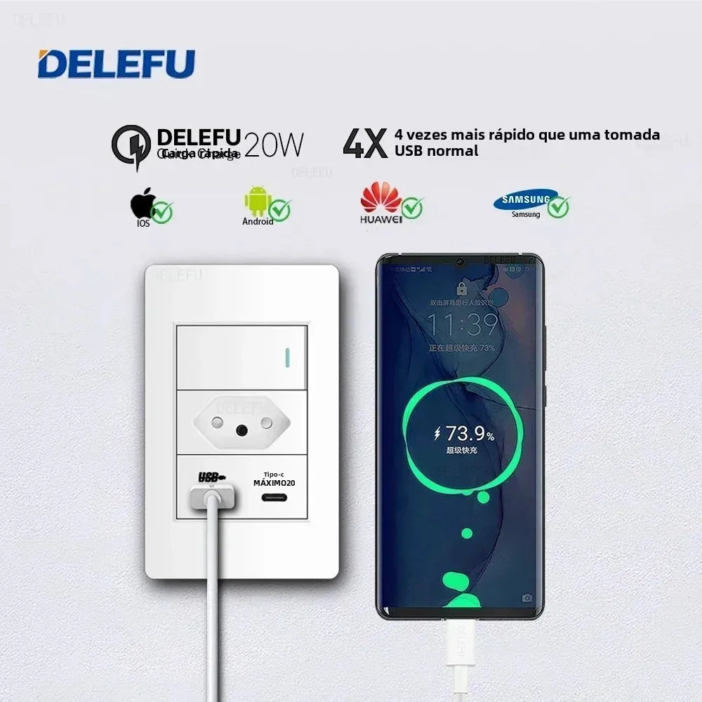Tomada Padrão Brasil + USB + Tipo C + WiFi Tuya – Tudo em Um Só Lugar!