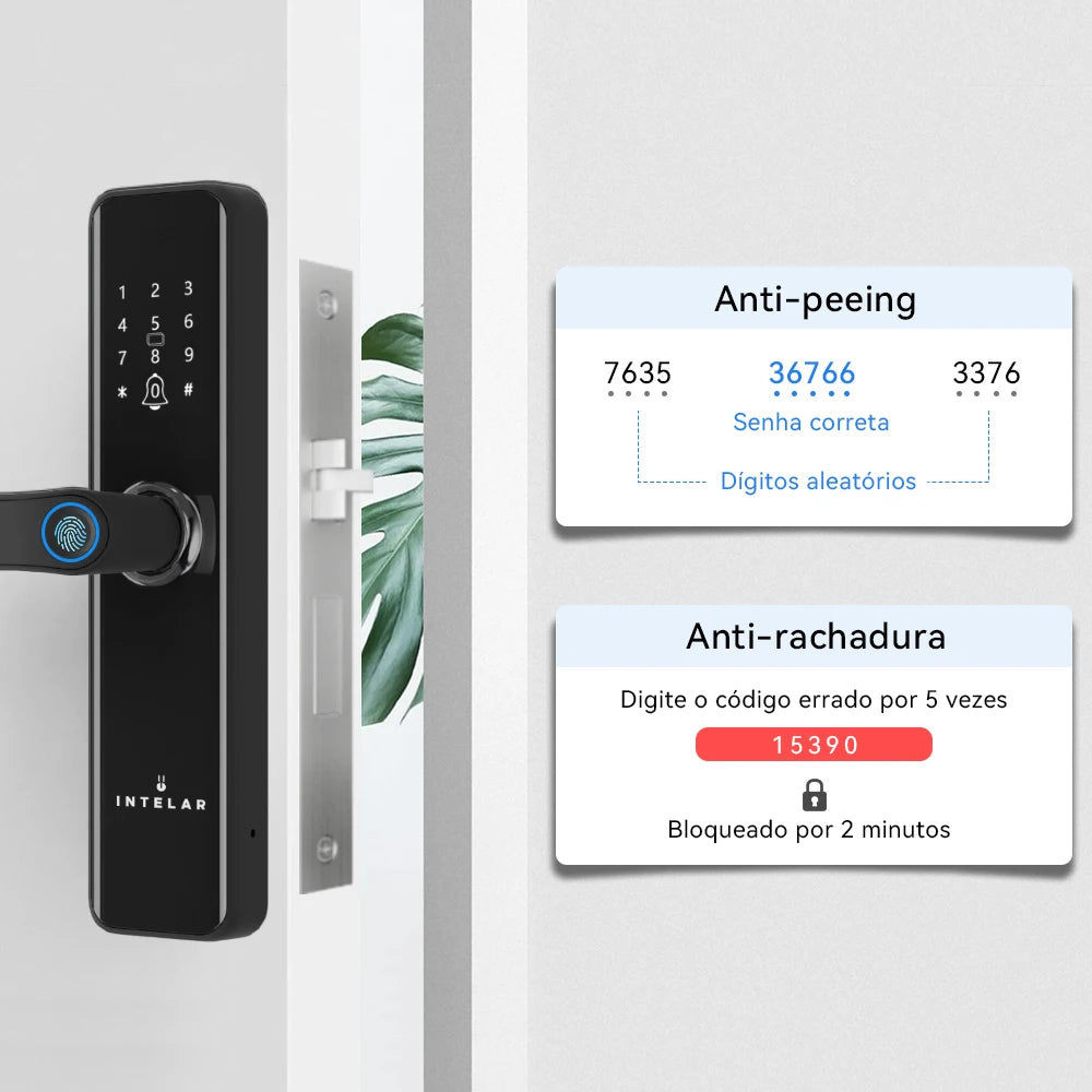 Ideal para residências, apartamentos e escritórios, a Intelar X5 combina segurança avançada com praticidade, eliminando o uso de chaves e permitindo múltiplas formas de desbloqueio: digital, senha, aplicativo e cartão RFID (opcional).