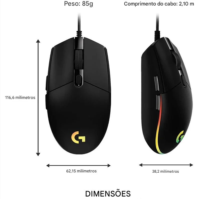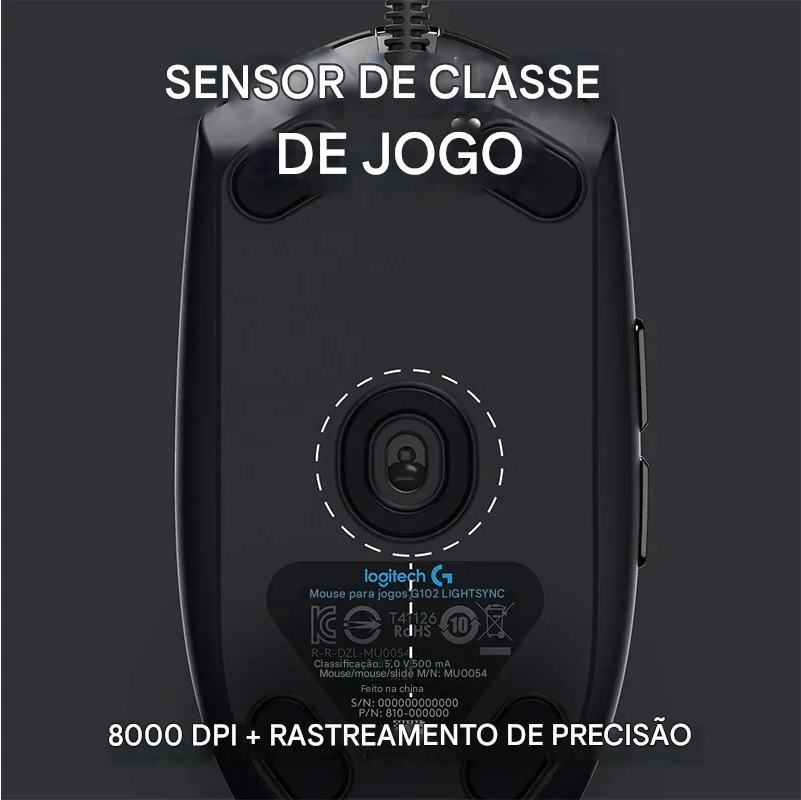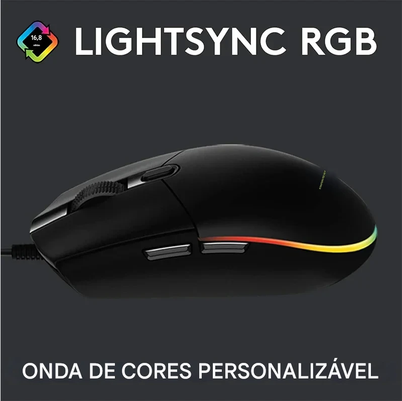Mouse Gamer Logitech G102 com Fio USB – Iluminação RGB e Sensor de 8000 DPI para PC/Mac