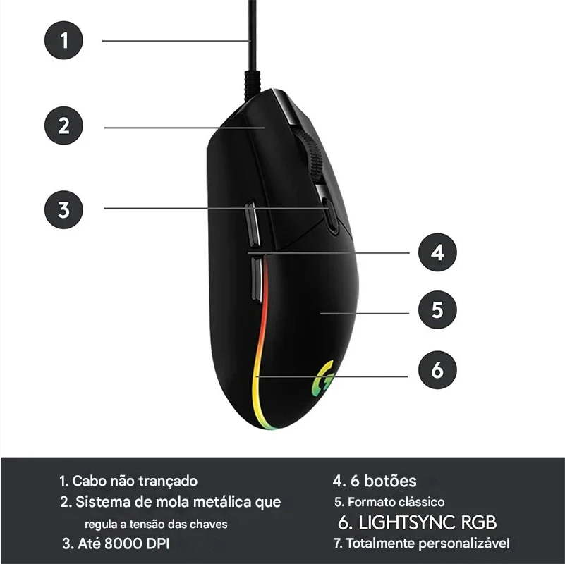 6 Botões Programáveis: ative comandos personalizados ou atalhos essenciais para ganhar vantagem nas partidas.