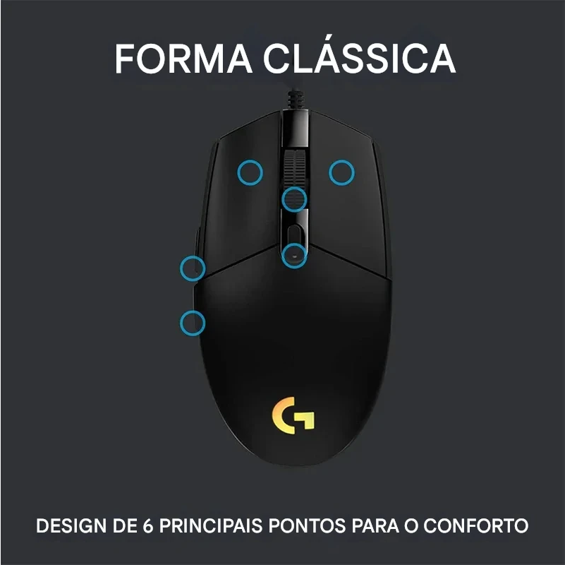 Seja você um jogador iniciante ou experiente, o Logitech G102 oferece a tecnologia e o visual que seu setup precisa. Com sua iluminação dinâmica e desempenho de alto nível, este mouse entrega jogabilidade fluida e customização completa para cada partida.