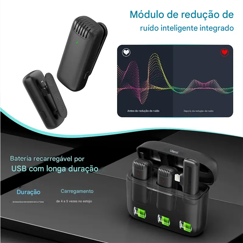 Seja para vídeos, podcasts, entrevistas ou aulas online, o Ulanzi J12 oferece qualidade de áudio profissional com total liberdade de movimento. Compacto, leve e fácil de usar — é o microfone ideal para quem busca performance e praticidade.